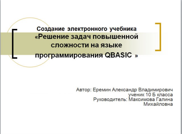 Тема: "Создание электронного учебника "Решение задач повышенной сложности на языке QBasic" смотреть